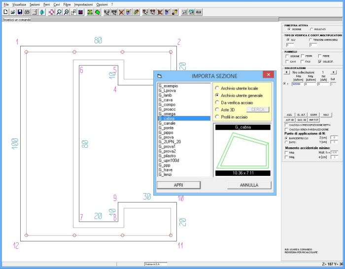 Il programma permette l'analisi di sezioni di forma
