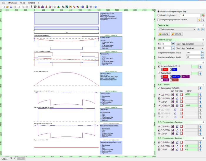 verifica di travi isostatiche in cemento armato precompresso a cavi aderenti con precompressione parziale o totale ed eventuali integrazione di getto in opera. La trave potrà