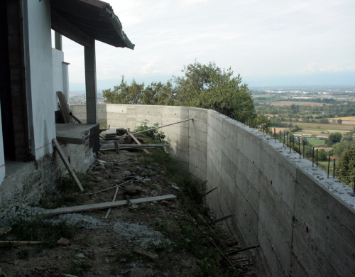 Muro su pali per messa in sicurezza e realizzazione cortile per civile abitazione
